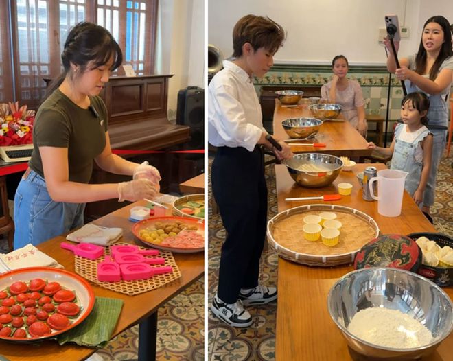 红龟粿与发糕工作坊则由糕点师带领,教导从包馅塑形到蒸煮的完整制作流程,让亲子深入了解这象征“长寿”与“发财发达”的经典福建点心及其文化寓意,同时享用亲手制作的糕点。