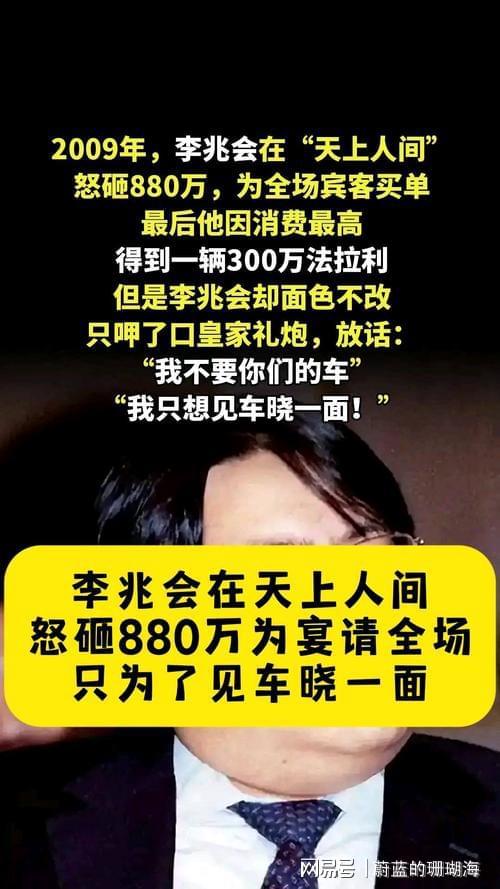 2009年山西首富李兆会单次消费880万元,用于包场及支付宾客账单,并获赠法拉利跑车。