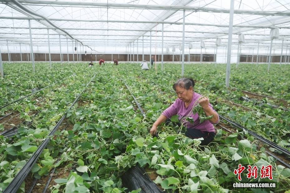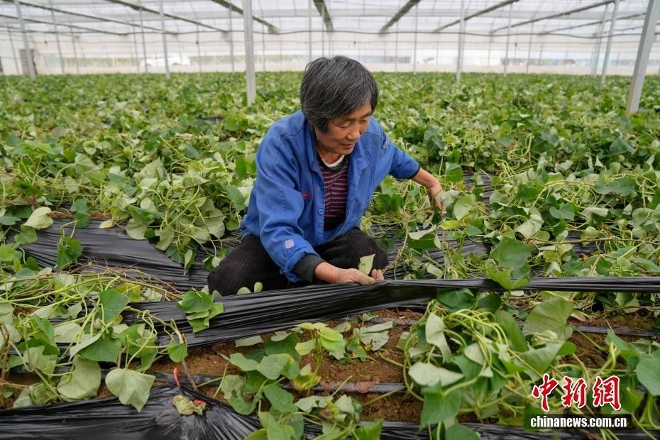 自南水北调中线工程水源地丹江口水库出发,沿公路行驶不久,便可抵达湖北省丹江口市三官殿街道蔡湾村。放眼望去,民居白墙灰瓦鳞次栉比,不远处蔬菜大棚错落有致,一幅幅田园新景映入眼帘。这个距丹江口大坝仅500米的“坝首第一村”,曾是南水北调中线工程最后一批移民离岸村落。14年前,为配合南水北调中线工程建设,数十万民众挥别故土,迁往他乡。蔡湾村也迎来一批集中安置移民。在北京的帮扶下,蔡湾村把曾经的荒田盘活,建成南水北调数字设施农业科技示范园。园区通过土地流转、大棚承包、合作社分红等方式,帮助村民增收致富。昔日的移民安置点,走过一条从“离乡”到“安居”的蜕变之路。图为10月22日,现年70岁的蔡湾村村民胡义荣在智能温室内整理红薯苗。中新社记者 张祥毅 摄