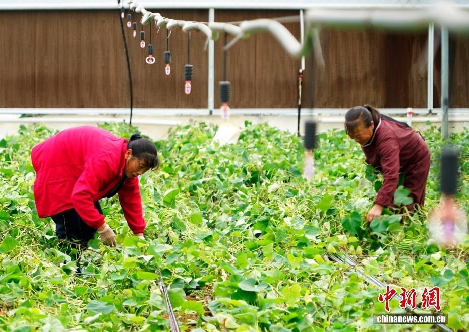 自南水北调中线工程核心水源地丹江口水库出发,沿公路行驶不久,便可抵达湖北省丹江口市三官殿街道蔡湾村。放眼望去,民居白墙灰瓦鳞次栉比,不远处蔬菜大棚错落有致,一幅幅田园新景映入眼帘。这个距丹江口大坝仅500米的“坝首第一村”,曾是南水北调中线工程最后一批移民离岸村落。14年前,为配合南水北调中线工程建设,数十万民众挥别故土,迁往他乡。蔡湾村也迎来一批集中安置移民。在北京的帮扶下,蔡湾村把曾经的荒田盘活,建成南水北调数字设施农业科技示范园。园区通过土地流转、大棚承包、合作社分红等方式,帮助村民增收致富。昔日的移民安置点,走过一条从“离乡”到“安居”的蜕变之路。图为10月22日,蔡湾村村民曾凡华(左)、王明英在蔬菜温室大棚里铺地膜。中新社发 石艺媛 摄