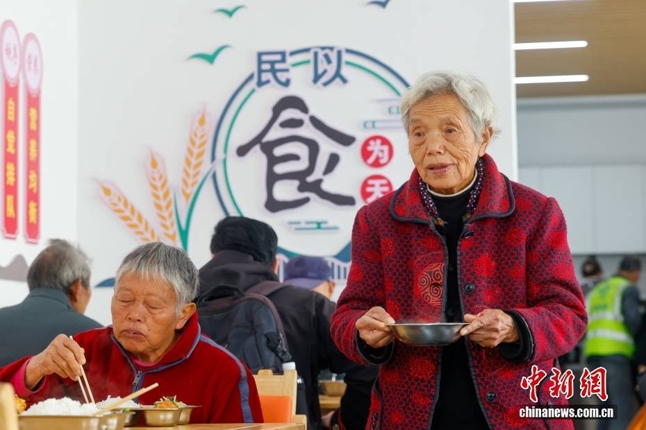 自南水北调中线工程核心水源地丹江口水库出发,沿公路行驶不久,便可抵达湖北省丹江口市三官殿街道蔡湾村。放眼望去,民居白墙灰瓦鳞次栉比,不远处蔬菜大棚错落有致,一幅幅田园新景映入眼帘。这个距丹江口大坝仅500米的“坝首第一村”,曾是南水北调中线工程最后一批移民离岸村落。14年前,为配合南水北调中线工程建设,数十万民众挥别故土,迁往他乡。蔡湾村也迎来一批集中安置移民。在北京的帮扶下,蔡湾村把曾经的荒田盘活,建成南水北调数字设施农业科技示范园。园区通过土地流转、大棚承包、合作社分红等方式,帮助村民增收致富。昔日的移民安置点,走过一条从“离乡”到“安居”的蜕变之路。图为10月22日,蔡湾村老人在村内开设的幸福食堂就餐。中新社记者 梁犇 摄