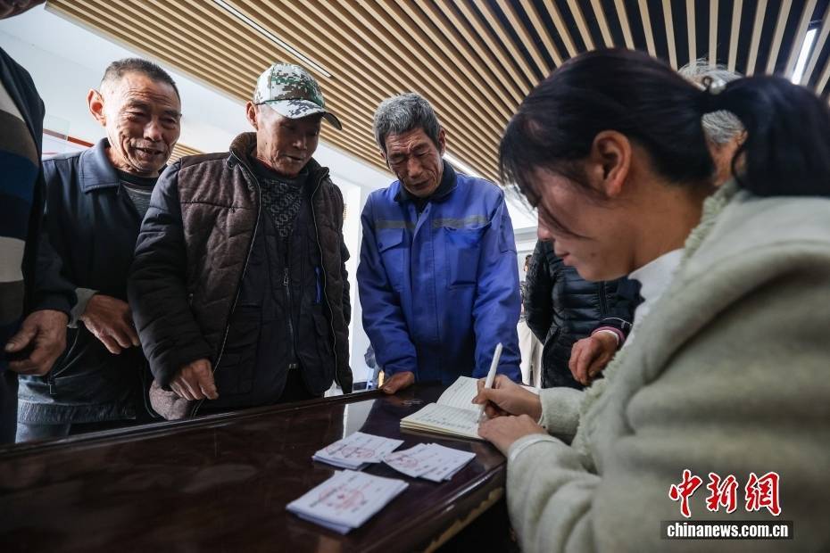 自南水北调中线工程核心水源地丹江口水库出发,沿公路行驶不久,便可抵达湖北省丹江口市三官殿街道蔡湾村。放眼望去,民居白墙灰瓦鳞次栉比,不远处蔬菜大棚错落有致,一幅幅田园新景映入眼帘。这个距丹江口大坝仅500米的“坝首第一村”,曾是南水北调中线工程最后一批移民离岸村落。14年前,为配合南水北调中线工程建设,数十万民众挥别故土,迁往他乡。蔡湾村也迎来一批集中安置移民。在北京的帮扶下,蔡湾村把曾经的荒田盘活,建成南水北调数字设施农业科技示范园。园区通过土地流转、大棚承包、合作社分红等方式,帮助村民增收致富。昔日的移民安置点,走过一条从“离乡”到“安居”的蜕变之路。图为10月22日,蔡湾村村民在“幸福食堂”用积分兑换餐券。中新社记者 瞿宏伦 摄