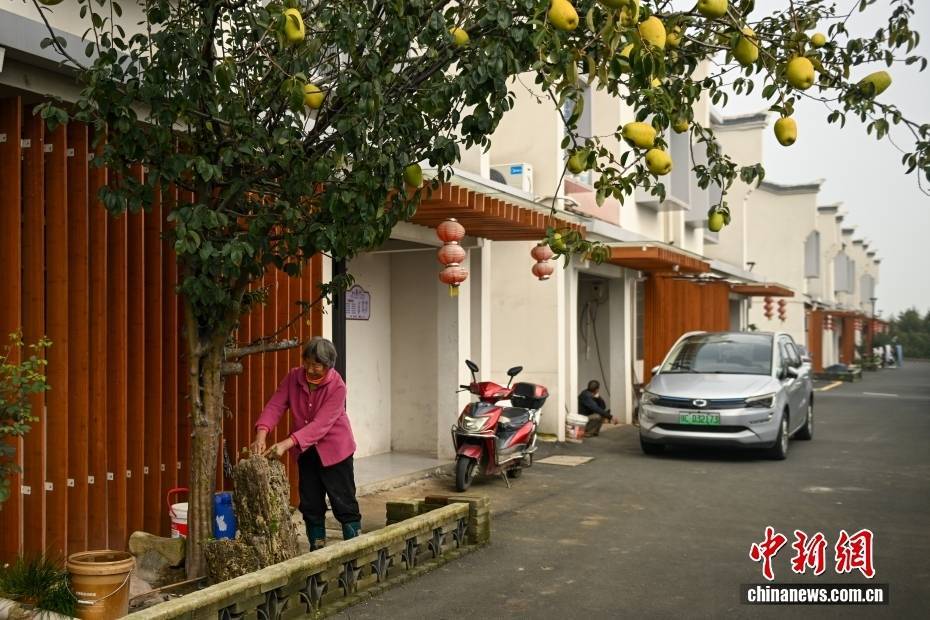 自南水北调中线工程核心水源地丹江口水库出发,沿公路行驶不久,便可抵达湖北省丹江口市三官殿街道蔡湾村。放眼望去,民居白墙灰瓦鳞次栉比,不远处蔬菜大棚错落有致,一幅幅田园新景映入眼帘。这个距丹江口大坝仅500米的“坝首第一村”,曾是南水北调中线工程最后一批移民离岸村落。14年前,为配合南水北调中线工程建设,数十万民众挥别故土,迁往他乡。蔡湾村也迎来一批集中安置移民。在北京的帮扶下,蔡湾村把曾经的荒田盘活,建成南水北调数字设施农业科技示范园。园区通过土地流转、大棚承包、合作社分红等方式,帮助村民增收致富。昔日的移民安置点,走过一条从“离乡”到“安居”的蜕变之路。图为10月22日,一名蔡湾村村民在家门口打理花台。中新社记者 刘忠俊 摄