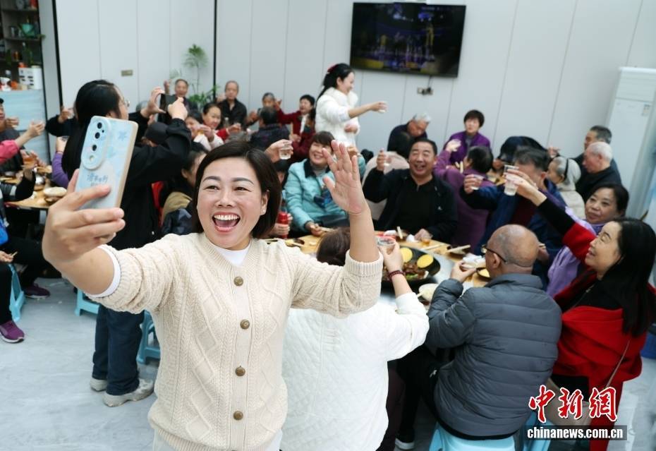 自南水北调中线工程核心水源地丹江口水库出发,沿公路行驶不久,便可抵达湖北省丹江口市三官殿街道蔡湾村。放眼望去,民居白墙灰瓦鳞次栉比,不远处蔬菜大棚错落有致,一幅幅田园新景映入眼帘。这个距丹江口大坝仅500米的“坝首第一村”,曾是南水北调中线工程最后一批移民离岸村落。14年前,为配合南水北调中线工程建设,数十万民众挥别故土,迁往他乡。蔡湾村也迎来一批集中安置移民。在北京的帮扶下,蔡湾村把曾经的荒田盘活,建成南水北调数字设施农业科技示范园。园区通过土地流转、大棚承包、合作社分红等方式,帮助村民增收致富。昔日的移民安置点,走过一条从“离乡”到“安居”的蜕变之路。图为10月22日,在蔡湾村幸福食堂,村中的老人们正在用餐。不同年龄段的老年人可获得不同程度的优惠。中新社记者 王骏 摄
