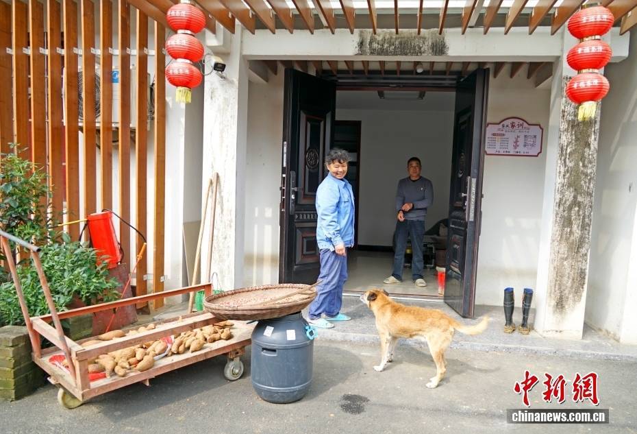 自南水北调中线工程核心水源地丹江口水库出发,沿公路行驶不久,便可抵达湖北省丹江口市三官殿街道蔡湾村。放眼望去,民居白墙灰瓦鳞次栉比,不远处蔬菜大棚错落有致,一幅幅田园新景映入眼帘。这个距丹江口大坝仅500米的“坝首第一村”,曾是南水北调中线工程最后一批移民离岸村落。14年前,为配合南水北调中线工程建设,数十万民众挥别故土,迁往他乡。蔡湾村也迎来一批集中安置移民。在北京的帮扶下,蔡湾村把曾经的荒田盘活,建成南水北调数字设施农业科技示范园。园区通过土地流转、大棚承包、合作社分红等方式,帮助村民增收致富。昔日的移民安置点,走过一条从“离乡”到“安居”的蜕变之路。图为10月22日,村民王秀林(右)和妻子曾元妹在家门口休息。中新社发 石艺媛 摄